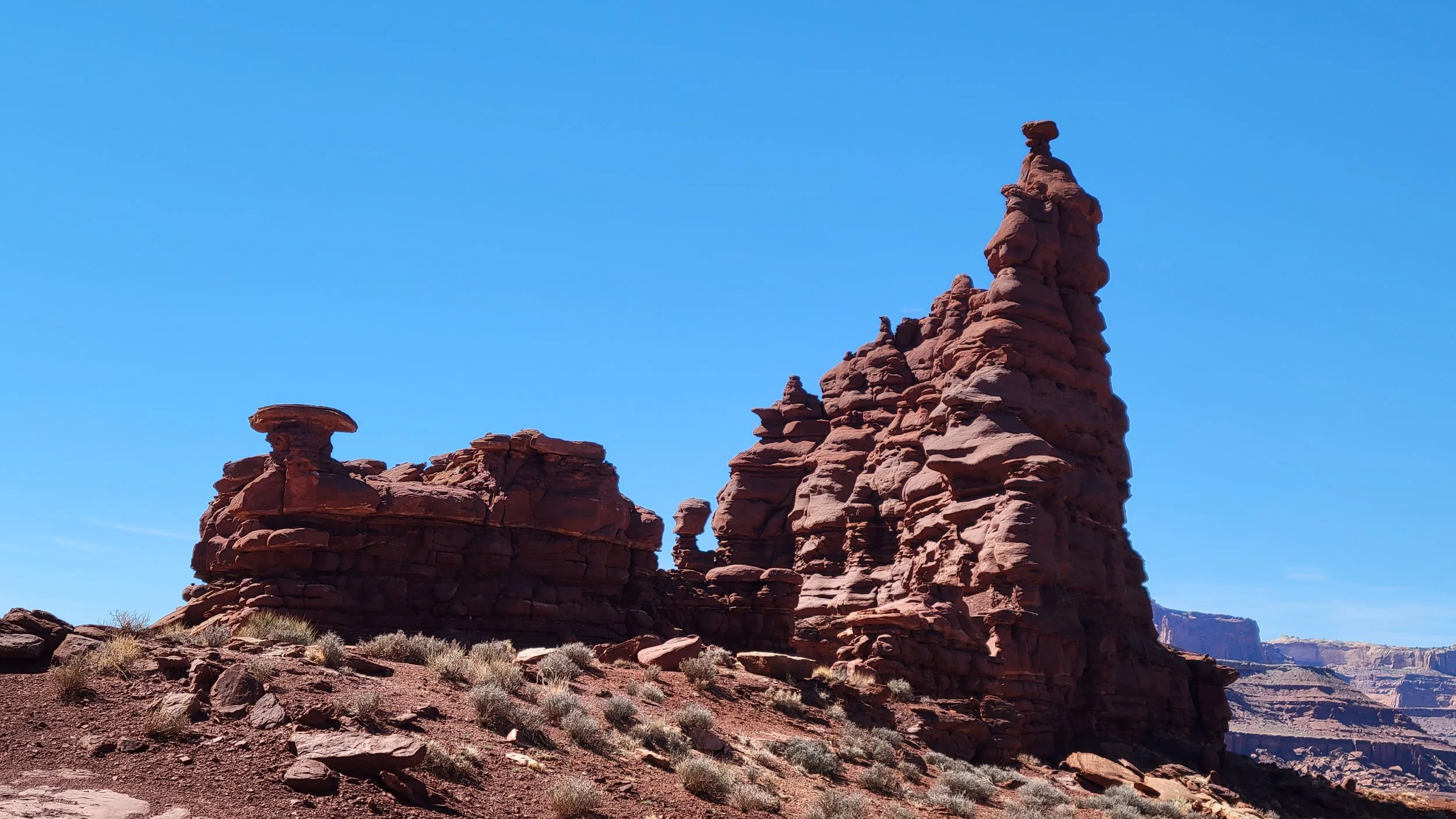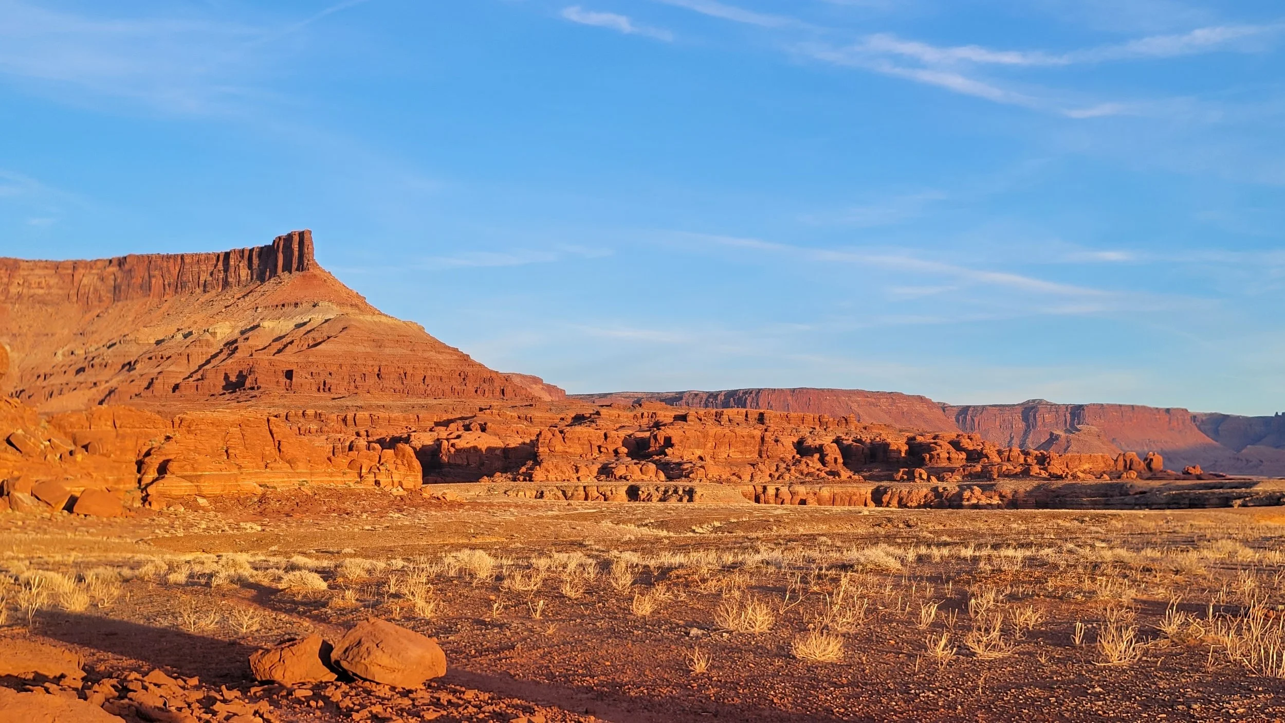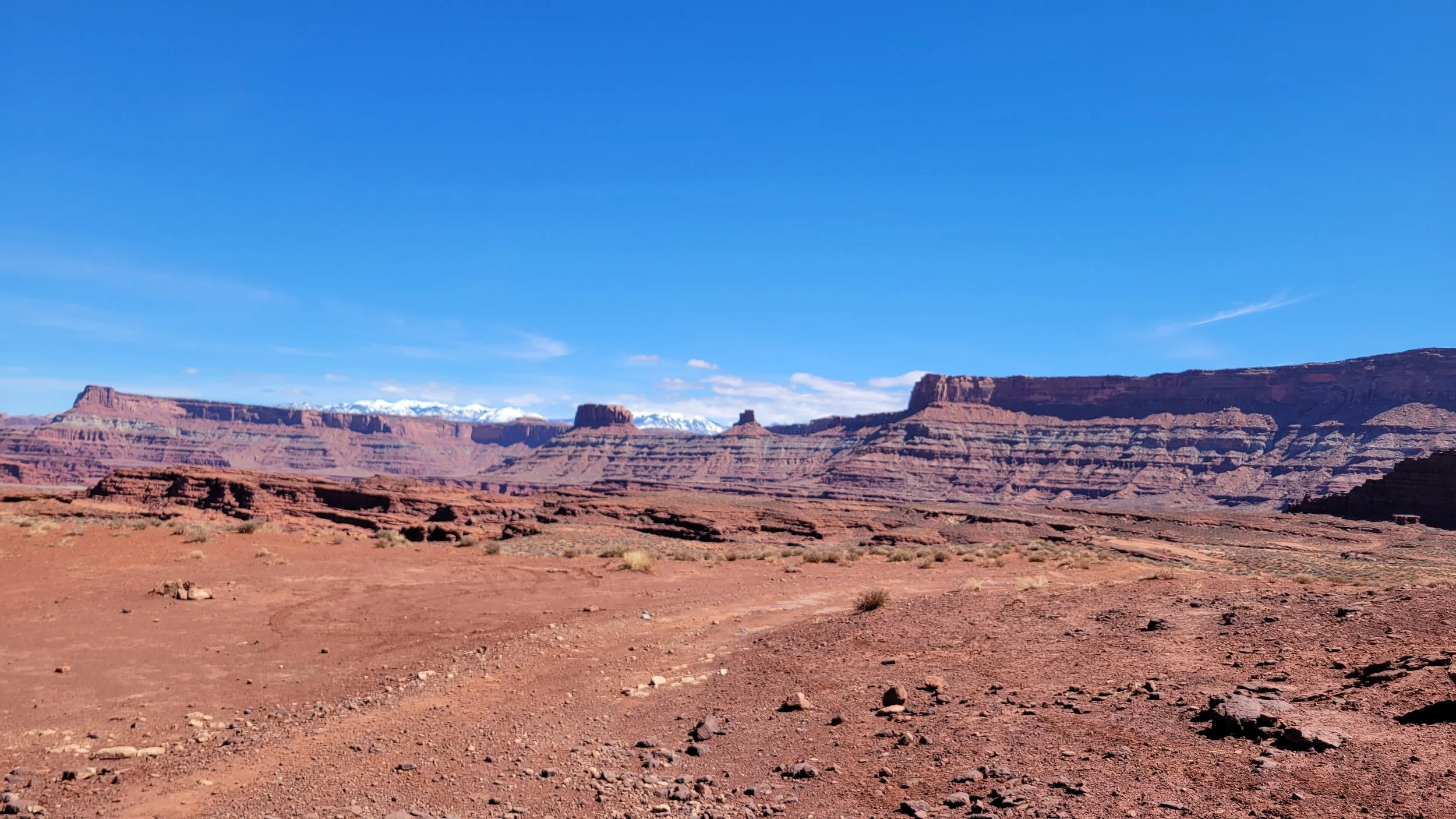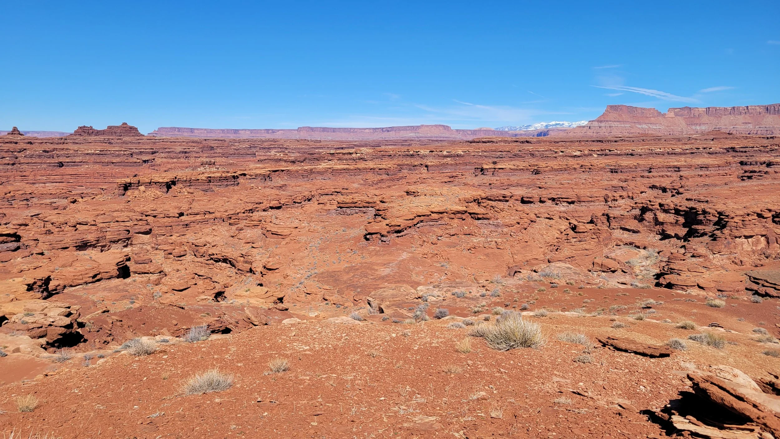 Today I followed the Colorado River through Bears Ears National Monument, Meander Canyon, Horsethief Canyon, Rustler Canyon, and LittleSpringCanyon. About half of the day was spent following 4x4 roads, often leap-frogging with groups of overlanders.They would of course pass me on the flat parts, but then they would hit a technical section and inevitably one of them would become stuck on some major feature while I waved and walked past. I went on like this with one group five or six times over the course of about 8 miles. They offered me a ride every time, I told them if they wanted me to drive so they could try hiking, I would help them out. I don’t think they got it. Eventually I stopped for lunch under an overhanging boulder and helped myself to a tuna, cheese, and jalapeno tortilla. They passed me one last time and I had the route all to myself for another mile before pulling off the road and dropping below the rim of Meander Canyon. This descent included the first of countless huge pour-offs that required tossing my backpack down ten or fifteen feet so I could more effectively down-climb and eventually drop to the floor below. There’s something unsettling about throwing your backpack with all of your food and water into a hole you’re not quite sure you can climb down– or back up.
