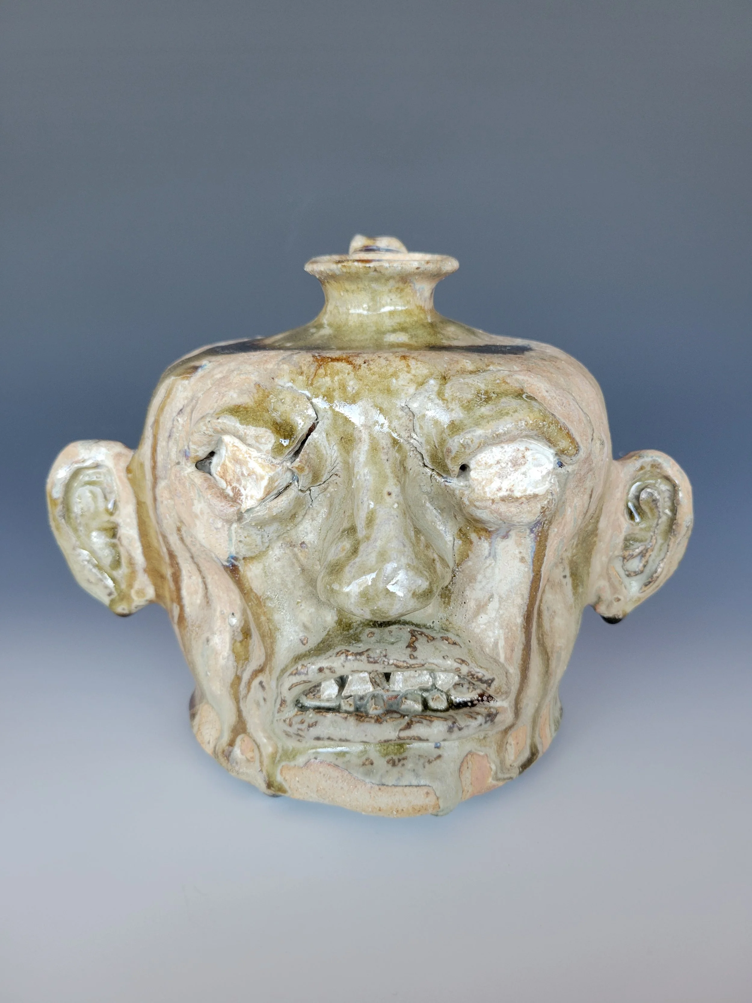 Image 1 of 1 Face Jug with Rock Eyes - Jetter $200.00 Hand dug wild clay, cone 10 reduction fired. Ash glaze with rock eyes. 8”×8”×8”. Add To Cart Added! Hand dug wild clay, cone 10 reduction fired. Ash glaze with rock eyes. 8”×8”×8”. Reviews Reviewer Name Review Date Star Rating Description Posted on Etsy Product Show More